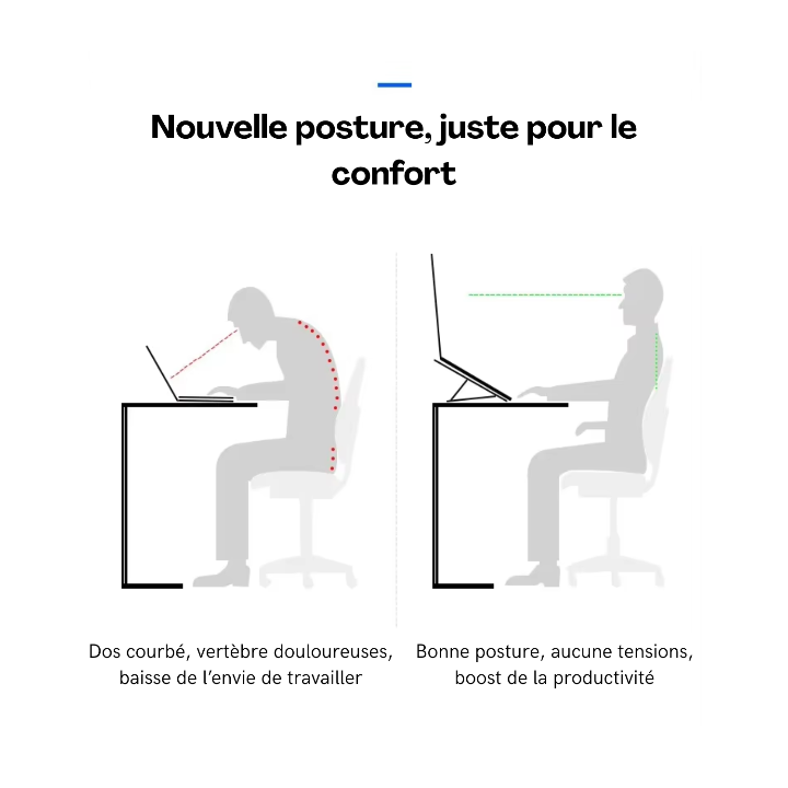 Fini les douleurs et la raideur après de longues heures d’écran. Le support vous aide à garder une posture plus droite, à relâcher les épaules et à soulager les tensions dans le cou. Vous respirez mieux, vous travaillez plus longtemps sans inconfort.